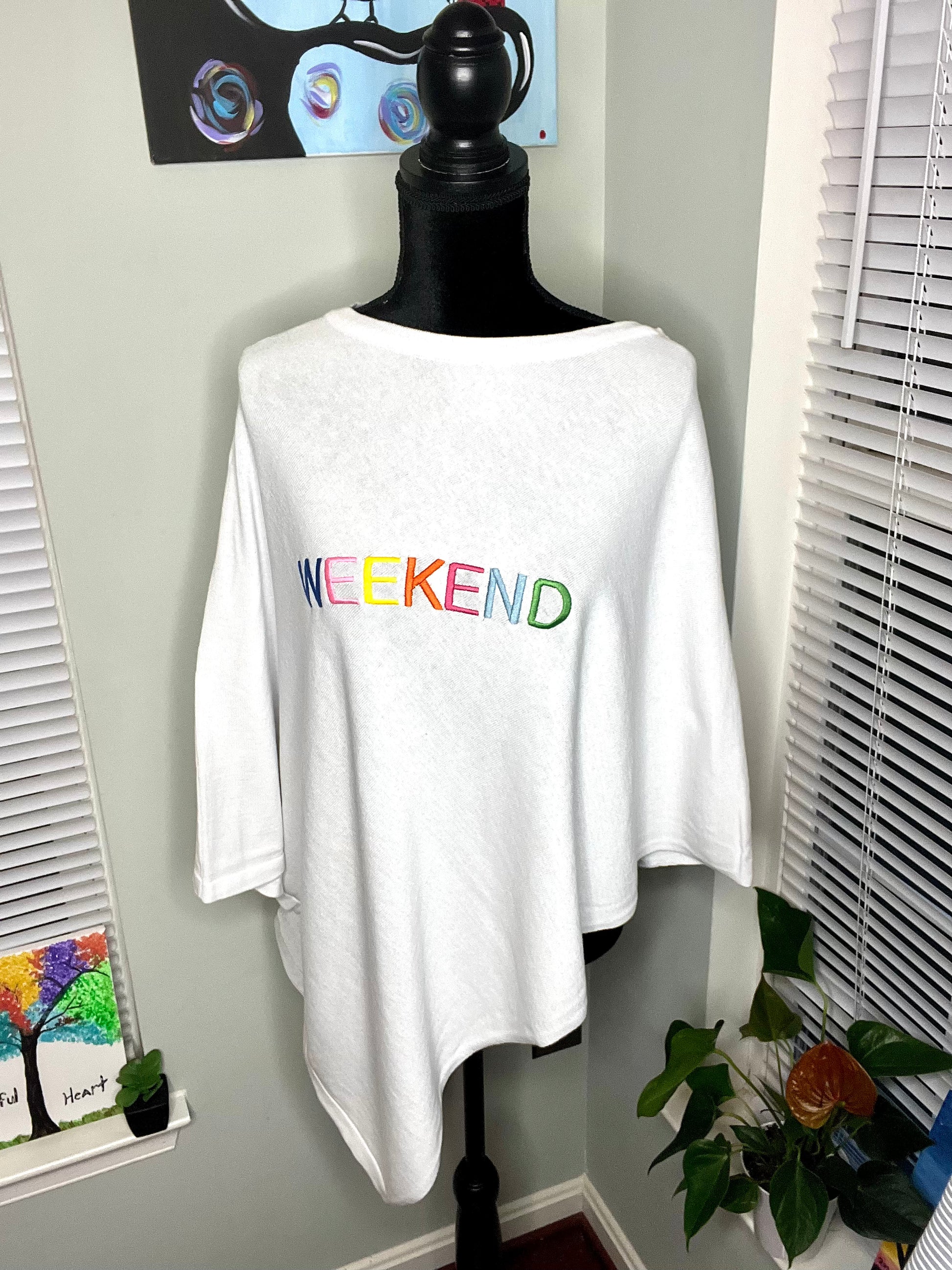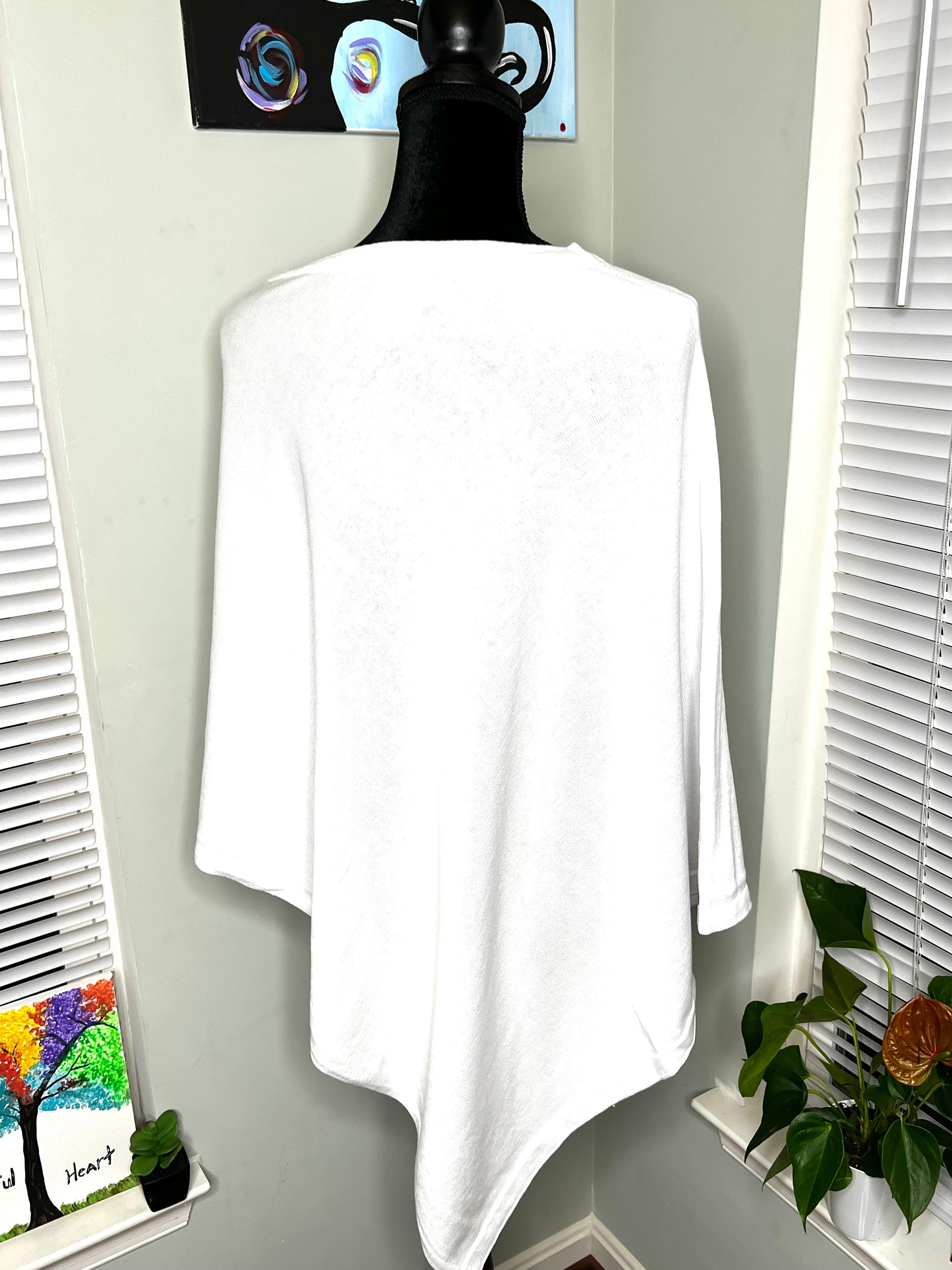 Our newest cotton poncho! This poncho has soft fabric, fun embroidered or knit details,and will be a go to piece in your spring or summer wardrobe. Perfect for layering!