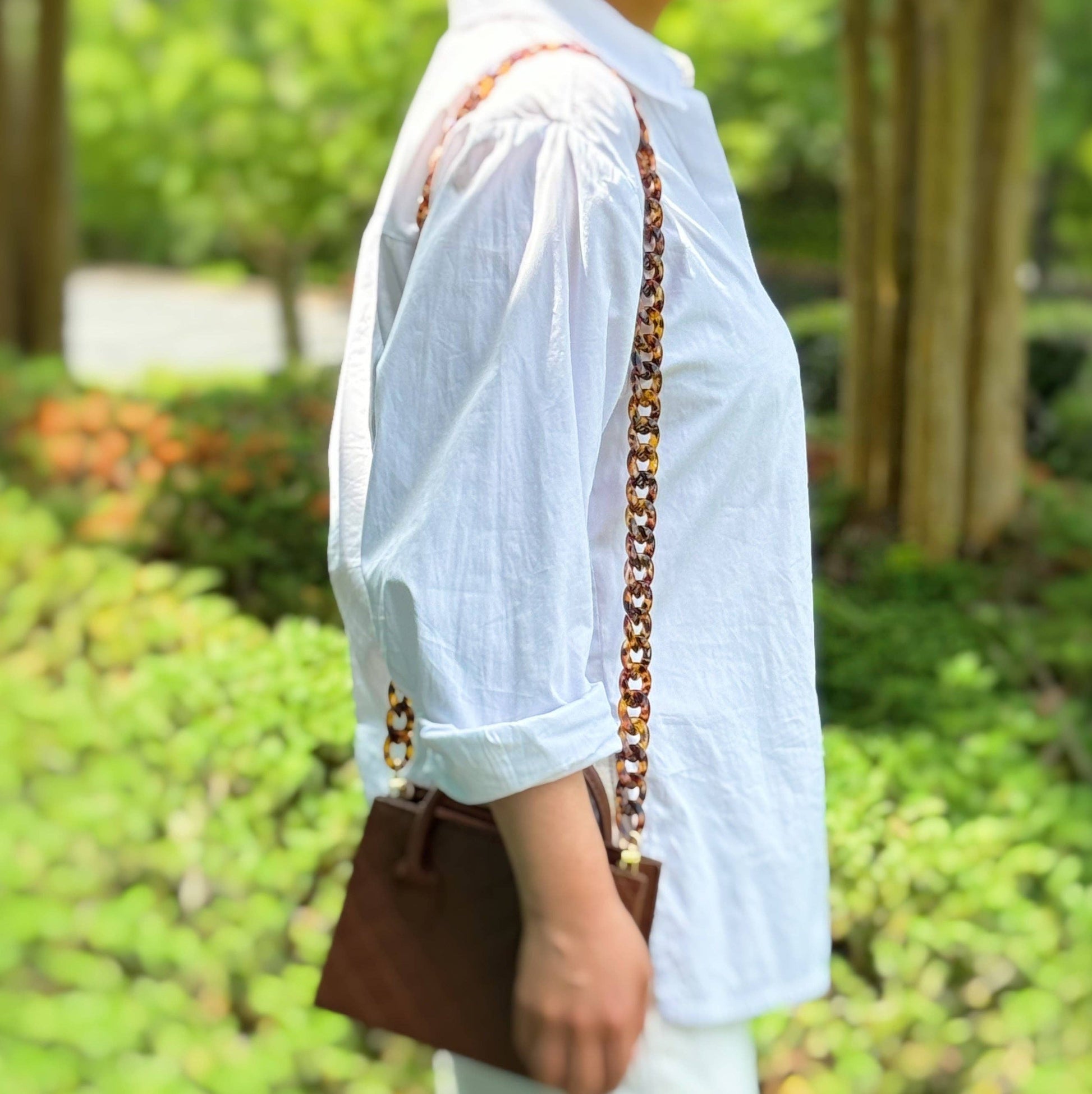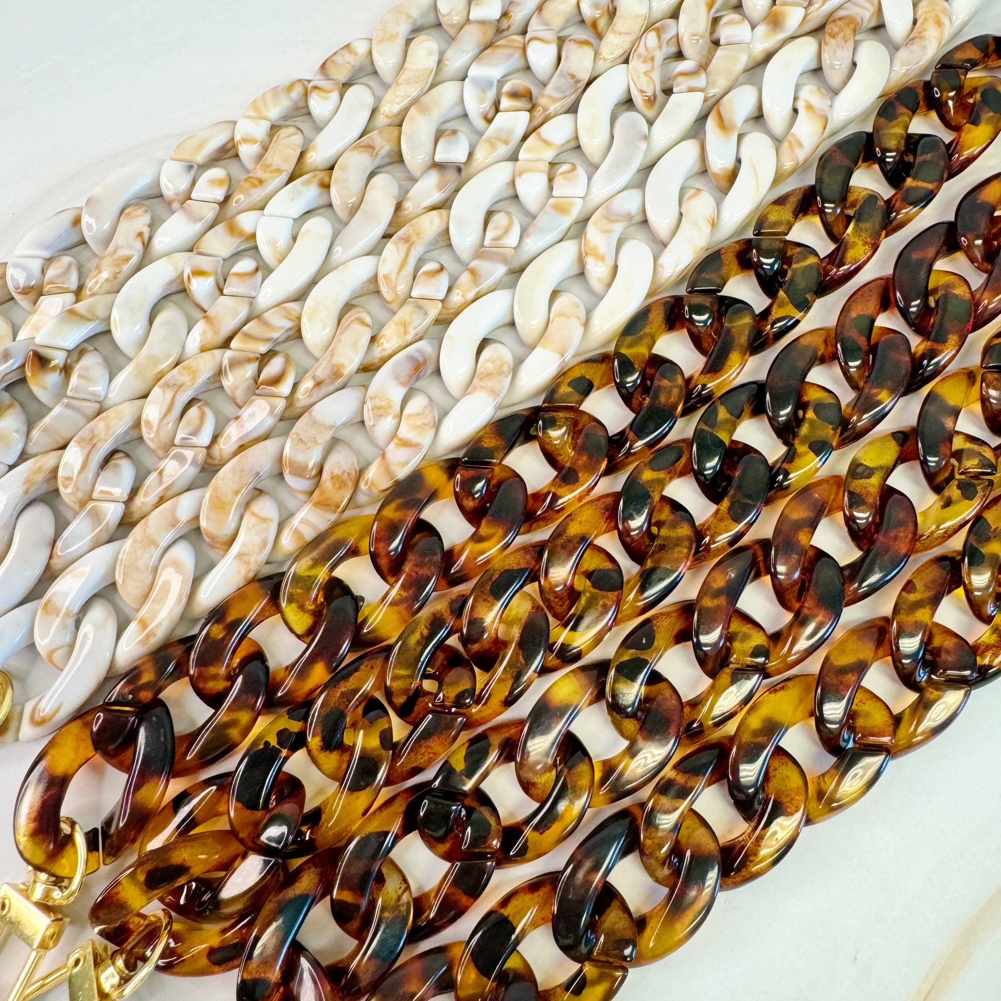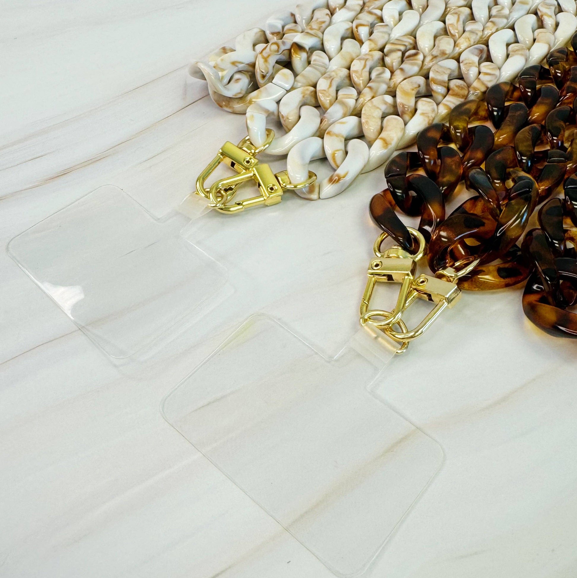 Attach this versatile lanyard to your phone, bags/wallets, ID or keys for hands-free convenience. The beautiful cream acrylic chain features golden hardware and includes a cello card for easy attachment. Keep your essentials close and secure with the Wink Lynk Multi Function Chain Lanyard Dimensions: approximately 0.8 " x 43" 18k gold plated brass, acrylic links Lead and Nickel free Crafted in China