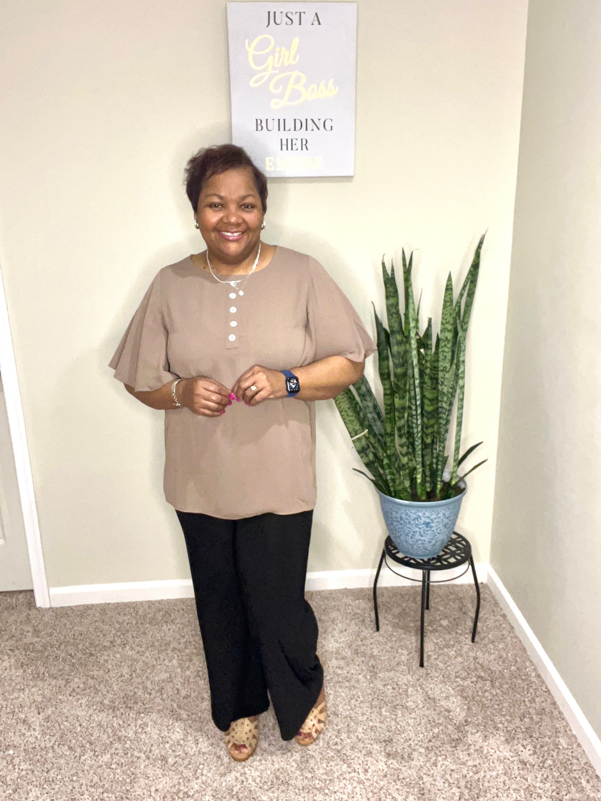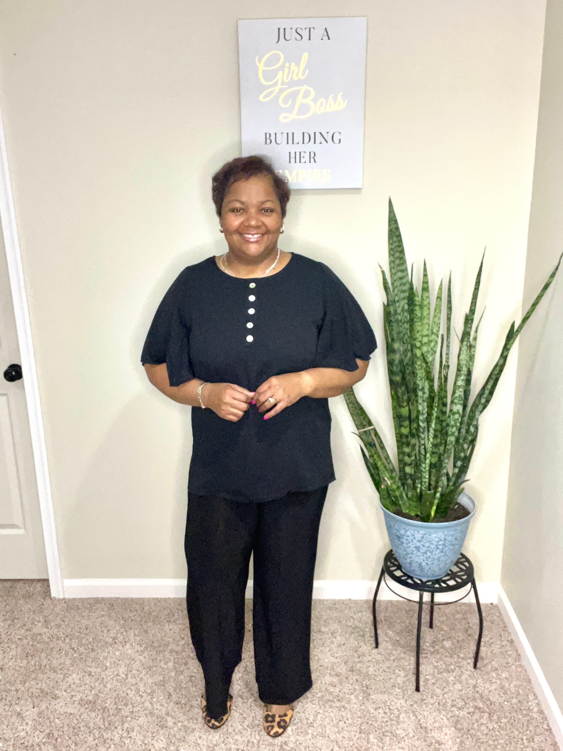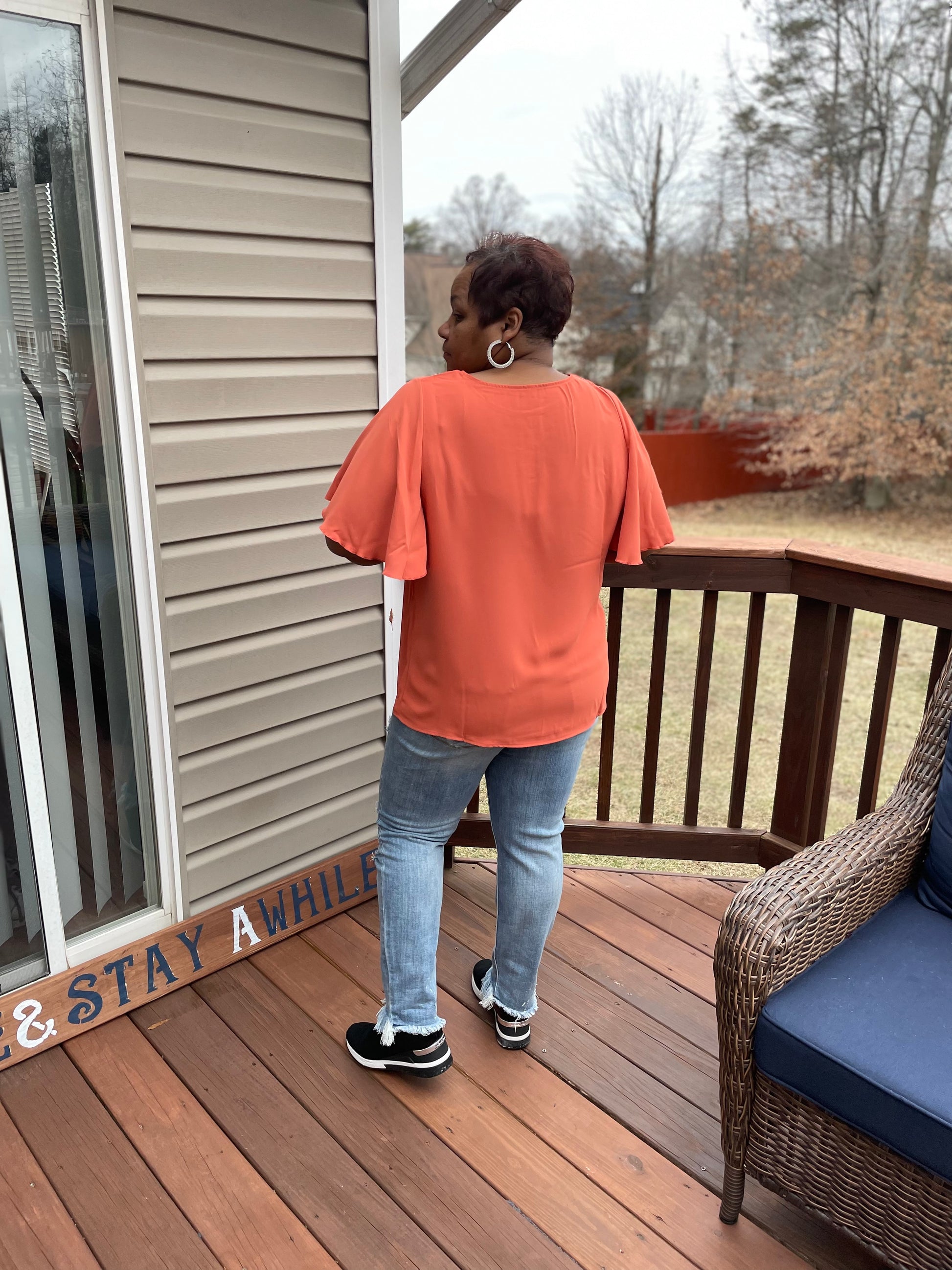 -WATERFALL SLEEVE BUTTON FRONT BLOUSE